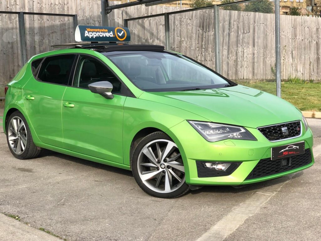 ***1 OWNER FROM NEW***FULL SEAT MAIN DEALER SERVICE HISTORY***A UNIQUE ONE OFF EXAMPLE ON THE MARKET LIKE NO OTHER***FULLY LOADED*** Panoramic Sunroof, 18 inch Diamond Cut Alloys, Adaptive Cruise, Full Leather Interior, Heated Seats, Front & Rear Parking Sensors, Sat Nav Satellite Navigation, Power Folding Mirrors, Bluetooth Streaming & Handsfree, Auto lights and much more standard/optional equipment. REG NO: ST64 OTZ – 76,000 MILES, 2 KEYS, MOT TILL DEC 2025, OWNERS MANUAL, HPI CLEAR, WARRANTY, STUNNING CONDITION THROUGHOUT, FINISHED IN LIMA GREEN METALLIC PAINT, A PRIME ONE OFF EXAMPLE NOT TO BE MISSED! This car is priced within 100 mile radius to ensure you get the best value for your money. A haggle free & hassle free purchase with every car. We take great pride in selecting our cars and are a family run business. With over 10 years experience of working with various car manufacturers and a great reputation to back it up, you’ll find you made the right choice by picking us! Buy with confidence, just take a look at our feedback! VIEWINGS ARE BY APPOINTMENT ONLY. For any enquiries, you can contact us 7 days a week by phone or email. This vehicle can be secured with a reservation deposit. All major cards accepted. Finance can also be arranged. Part exchange welcome. Nationwide delivery available. MSK Motors Ltd, One street, Bradford, BD1 2PL